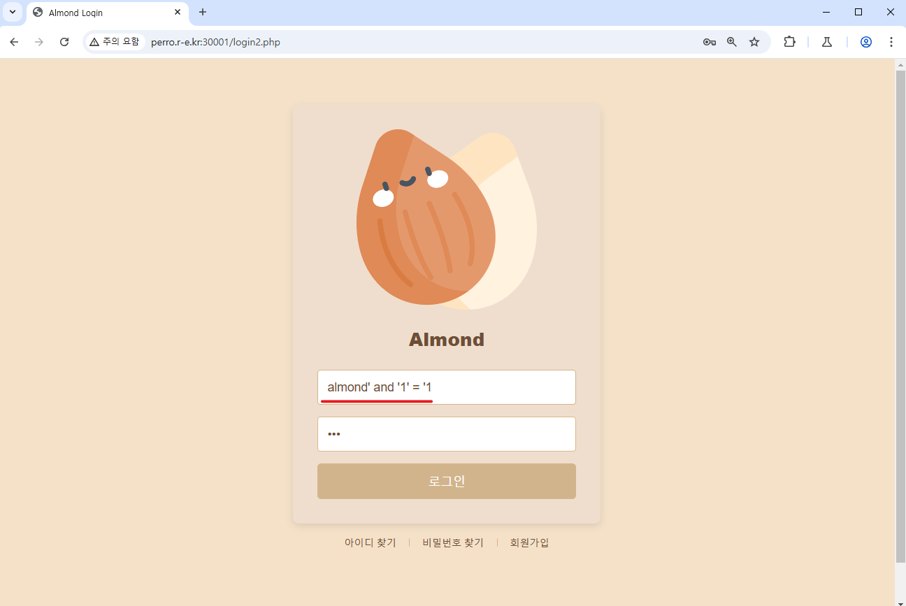 1. 참 쿼리를 삽입하여 로그인을 시도합니다.