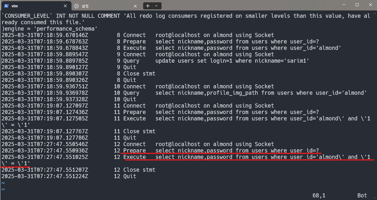 3. 서버 측 로그 확인 결과 정상적으로 Prepared Statement가 사용되었습니다.