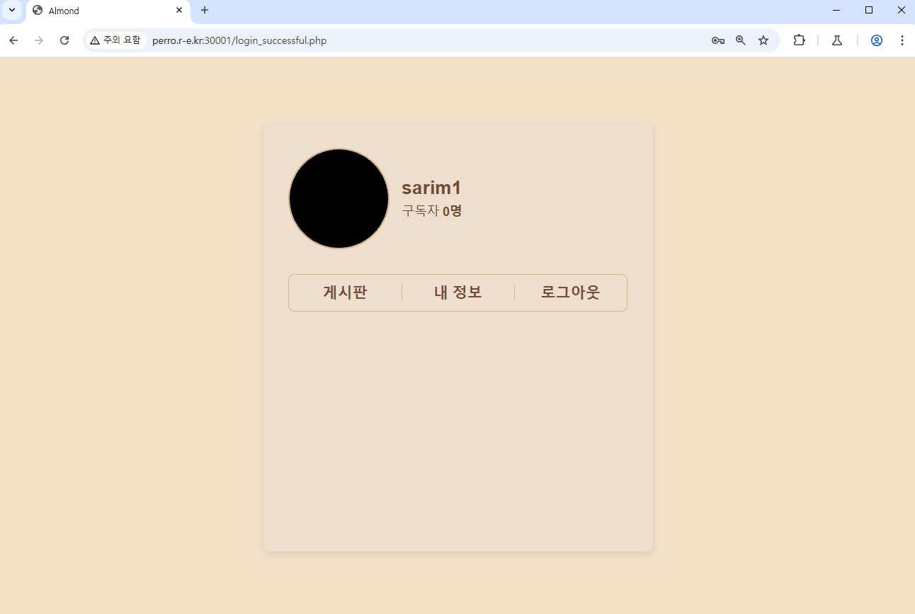 2. 로그인에 성공하는 것으로 삽입한 SQL 쿼리가 실행되는 것을 확인합니다.