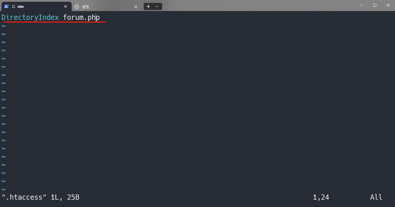 2. .htaccess 파일을 생성하고 DirectoryIndex 옵션으로 인덱스 파일을 설정합니다.