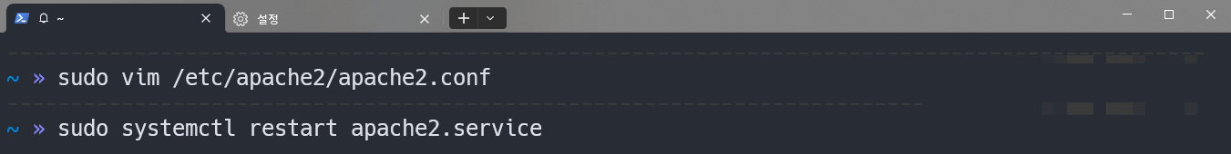 1. 서버 설정 파일 (apache2.conf)에 접근합니다.
