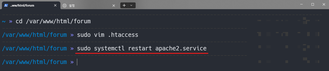 3. 아파치 서비스를 재시작하여 설정을 적용합니다.