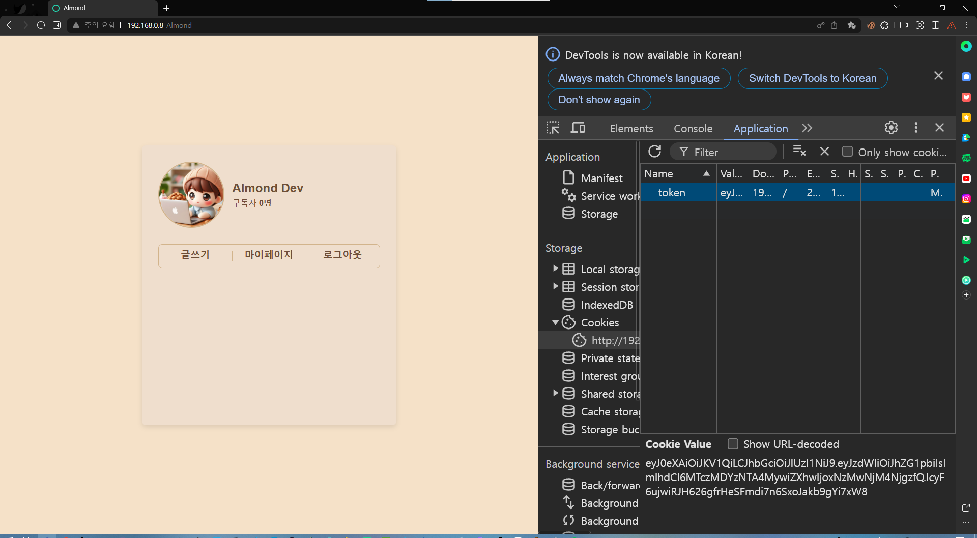 Jwt_auth를 이용해서 토큰을 인증하고 인증에 성공하면 닉네임을 가져온 뒤 프로필 페이지를 출력하고,