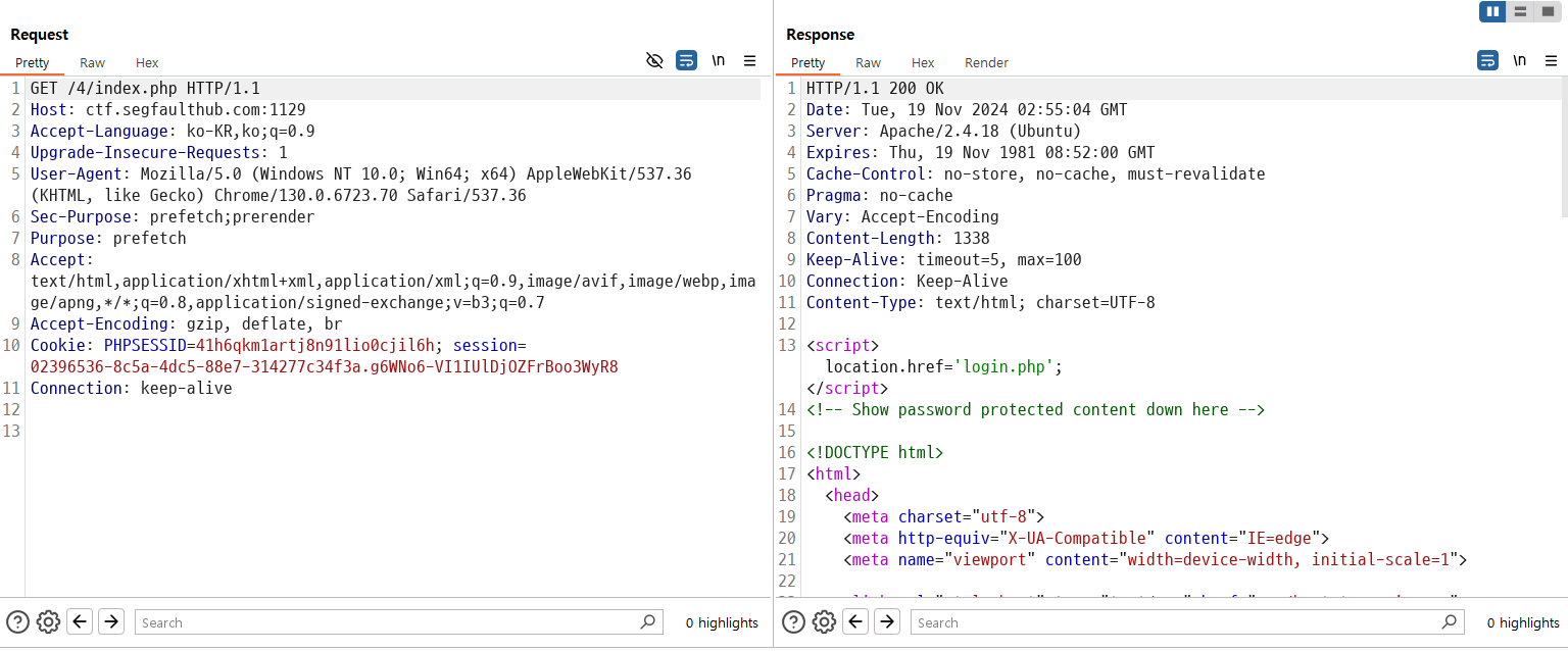 리다이렉트를 시키더라도 html코드가 그대로 노출되기에 플래그가 보입니다.