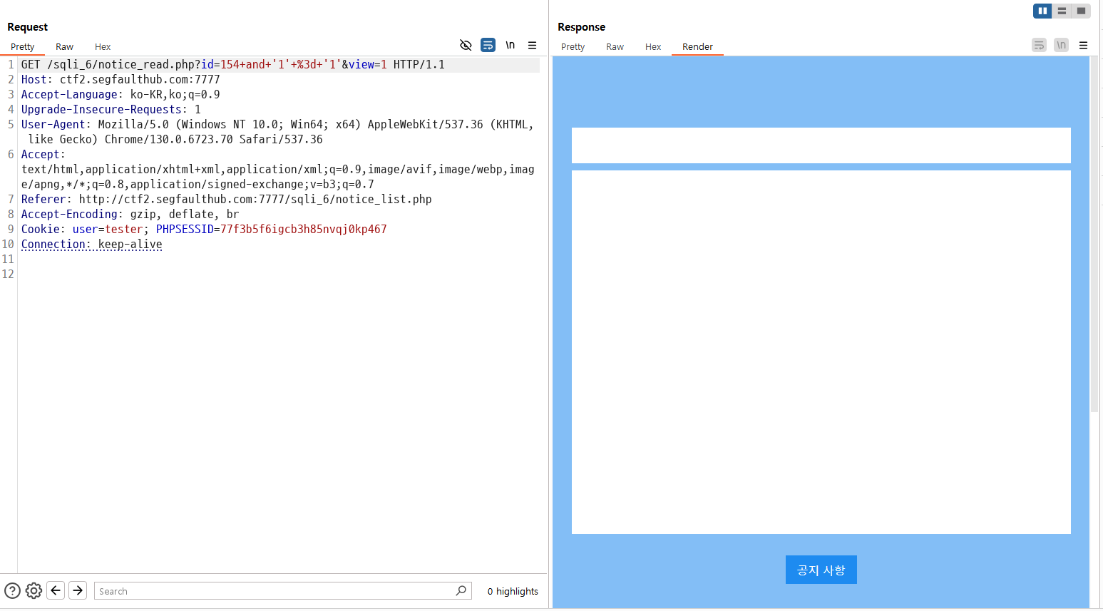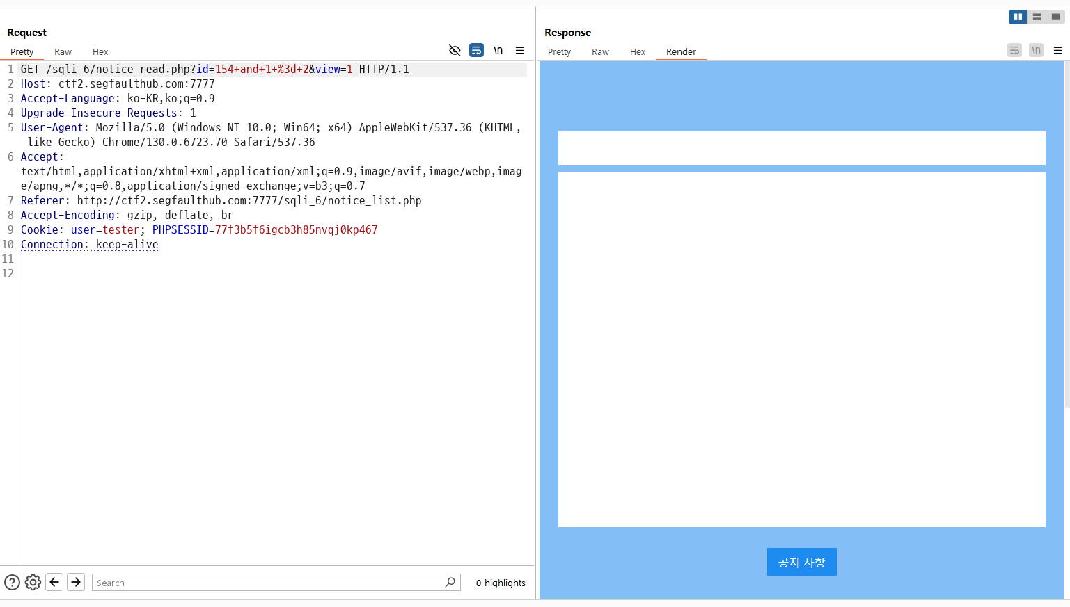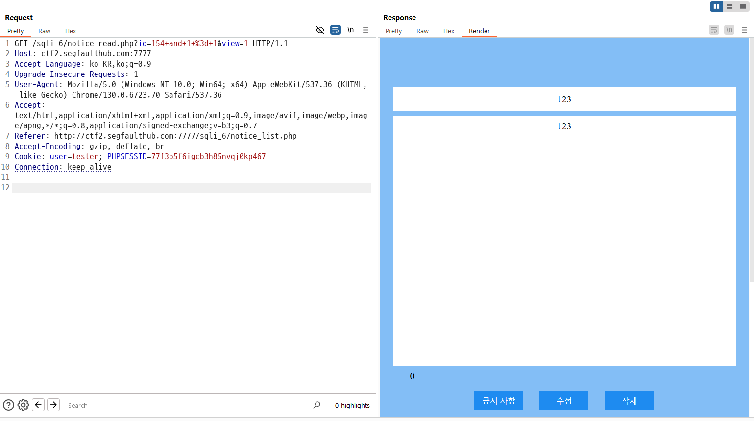게시글의 id값을 이용해서 sql injection을 확인해 보겠습니다.