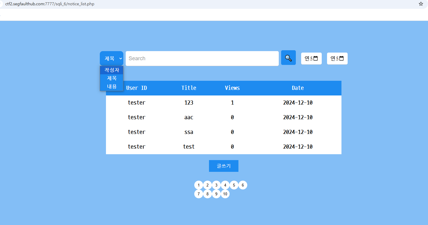 SQLI Point를 찾기 위해서 사이트의 기능들을 살펴보고 어디서 sql 질의를 사용하는지 추측해 봤습니다.