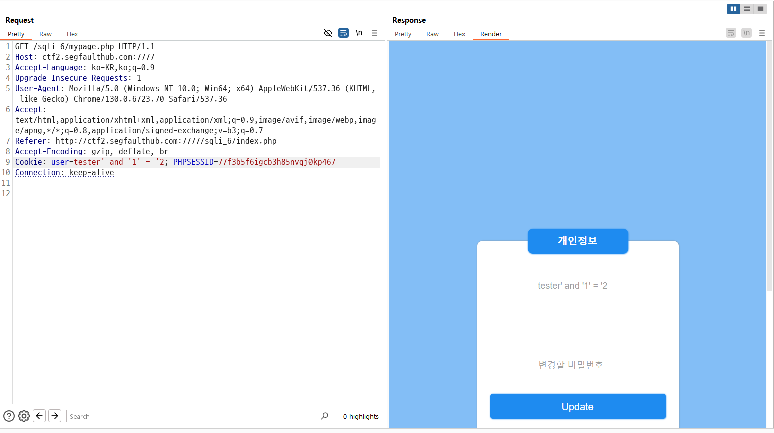 url = "http://ctf2.segfaulthub.com:7777/sqli_6/mypage.php"