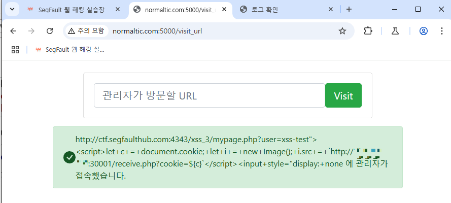 스크립트를 삽입한 URL로 봇이 접속하도록 합니다.