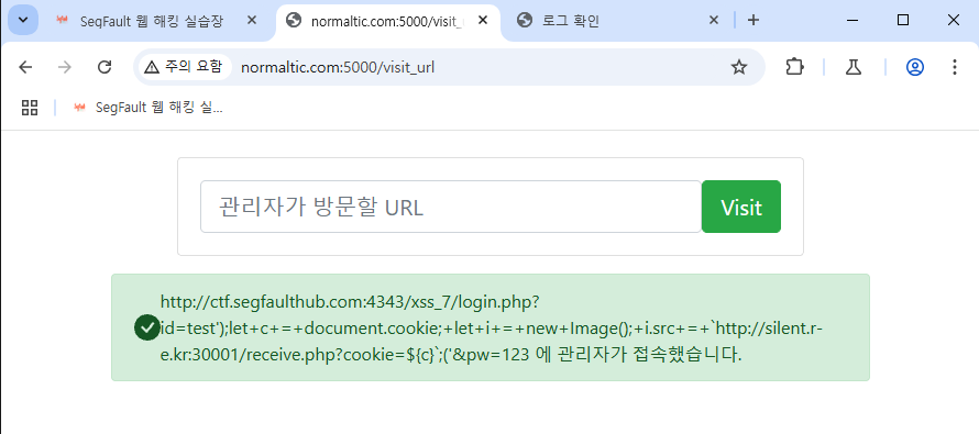 스크립트를 삽입한 악성 URL을 봇이 접속하도록 합니다.