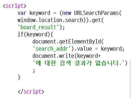 document.write함수는 html 코드를 페이지에 삽입해 주기 때문에 xss에 취약합니다.