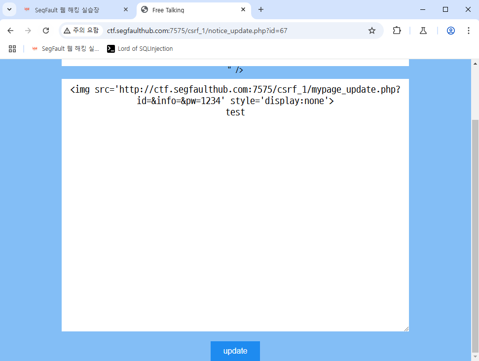 게시글에 img태그를 삽입한 뒤 관리자가 게시글에 접근하도록 유도하면
