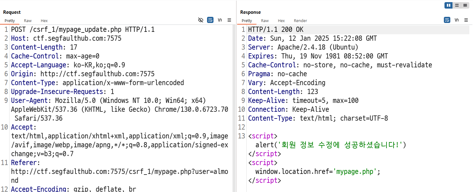 문제에서 admin 계정을 탈취하라고 합니다. 그렇다면 비밀번호 변경 기능이 CSRF 취약점이 있는지 확인합니다.