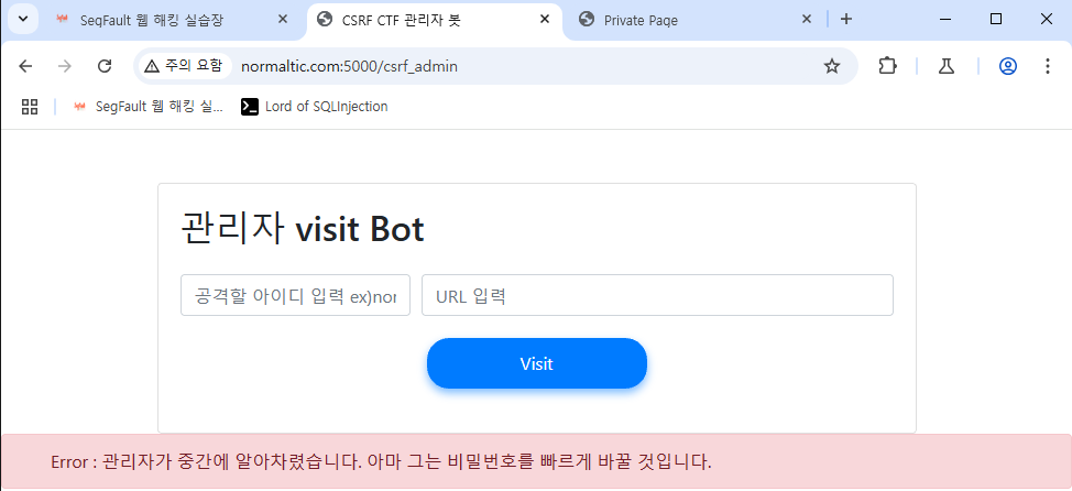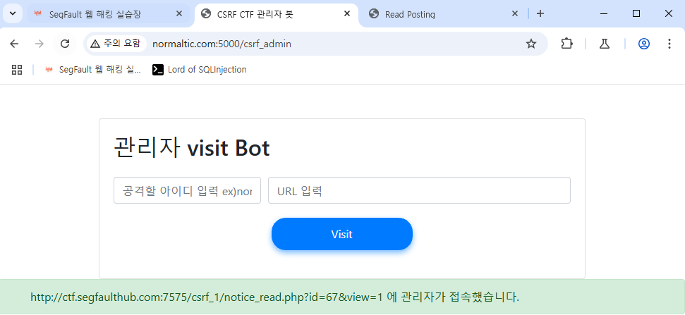 위에서 만든 GET 메서드에 관리자봇이 접근하도록 해보겠습니다.