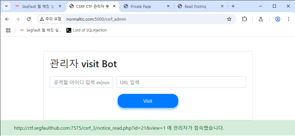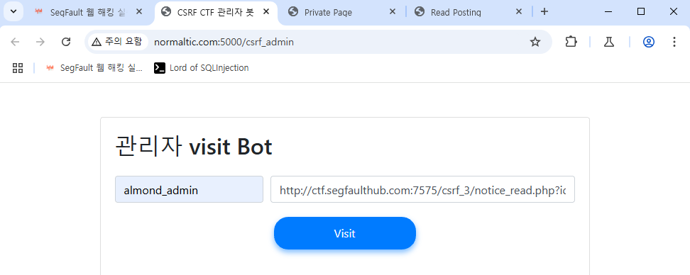 이제 관리자봇이 해당 게시글에 접근하도록 하면 됩니다.