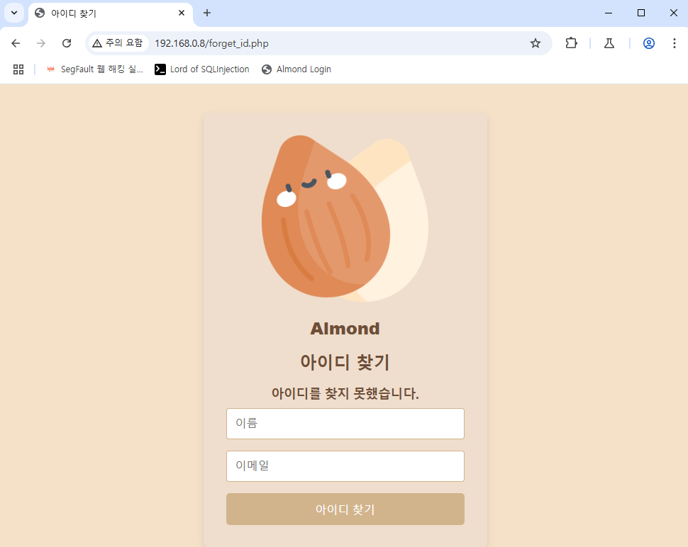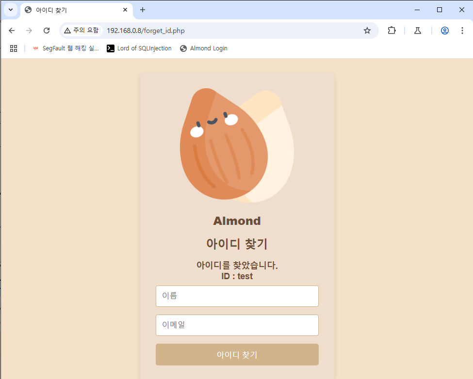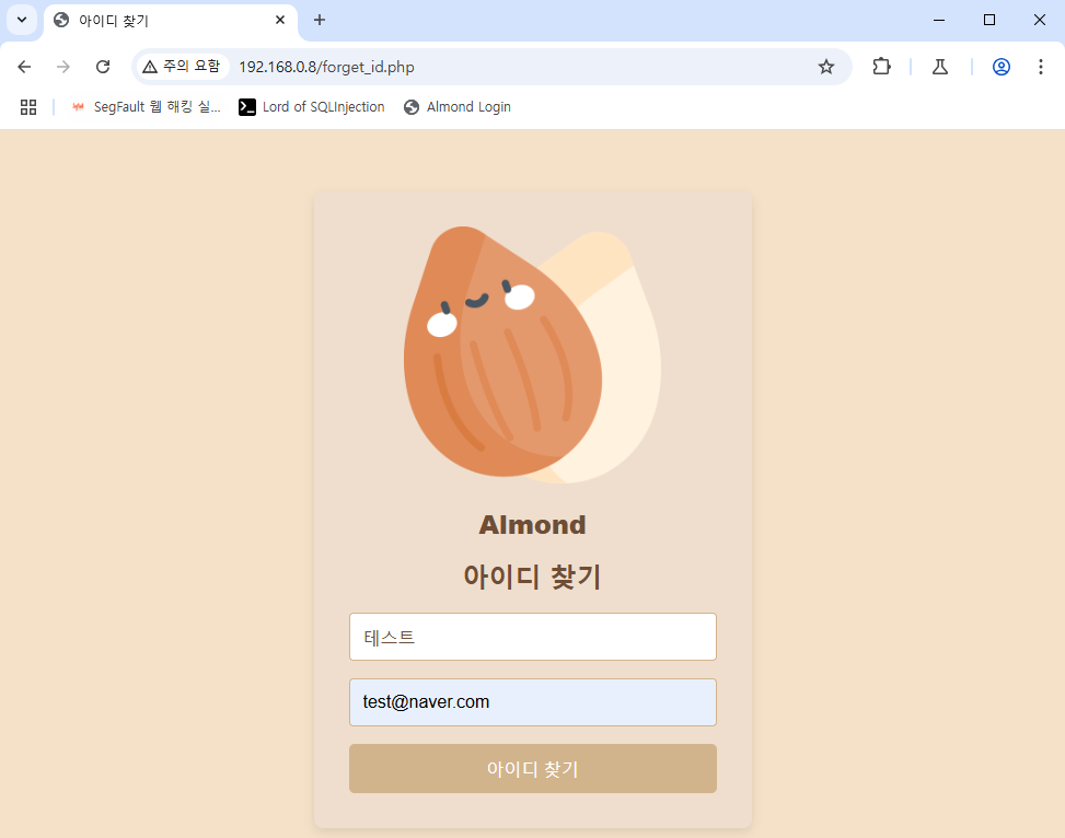 이름과 아이디 이메일을 이용해 아이디를 찾는 기능입니다.