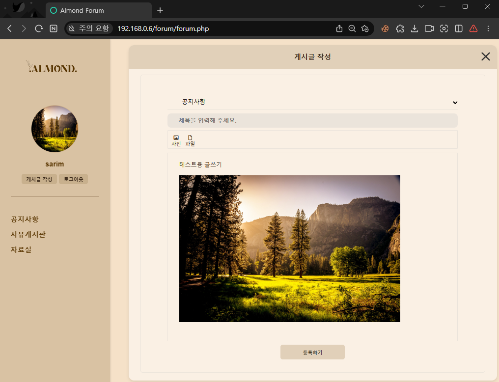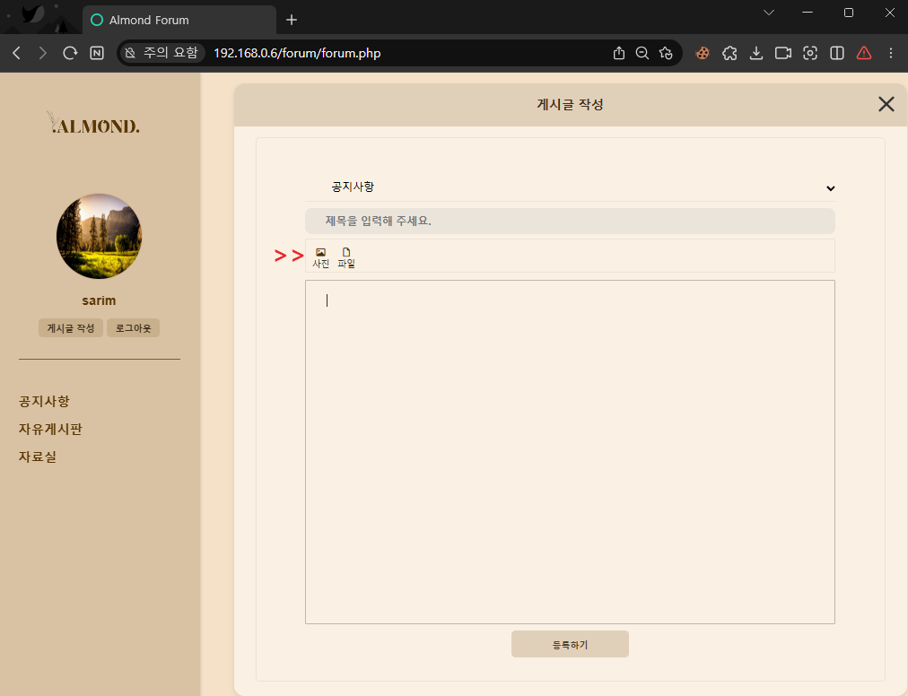 게시글을 입력할 때 글 내부에 이미지를 추가할 수 있는 기능입니다.