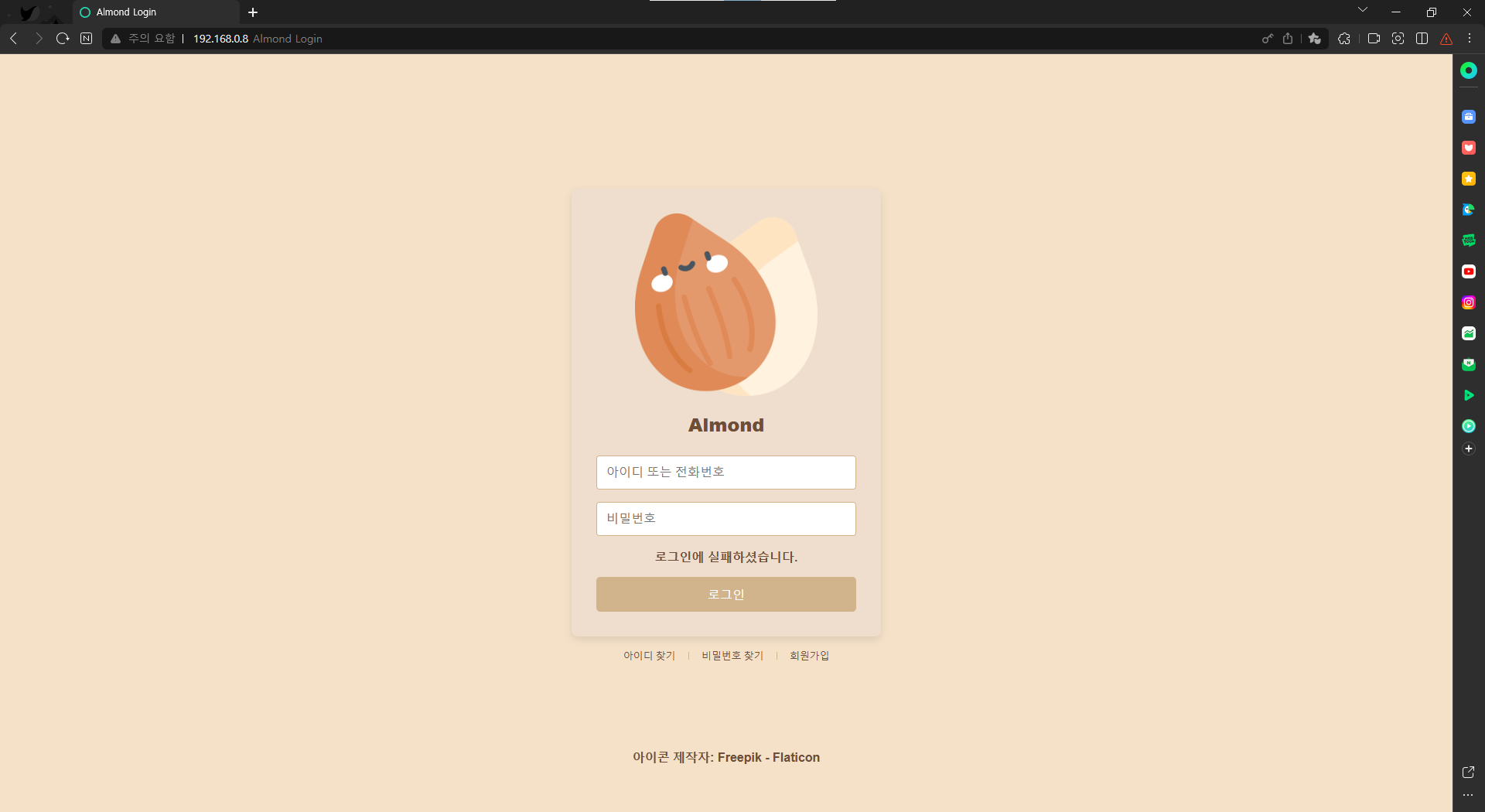 실패 시 다시 로그인 페이지로 돌아가며, 로그인 실패 메시지를 띄우게 됩니다.