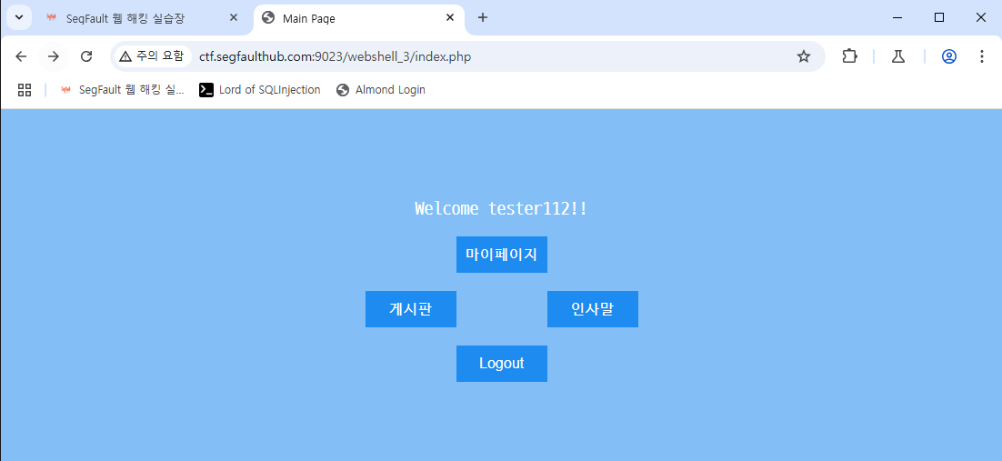 게시판에 접근하기 위해서 로그인을 합니다. (tester112 / 1234 계정 생성)