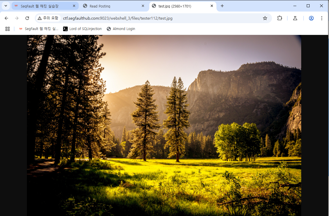 정상적인 jpg 파일을 업로드하여 서버에 업로드가 정상적으로 되는지 확인합니다.