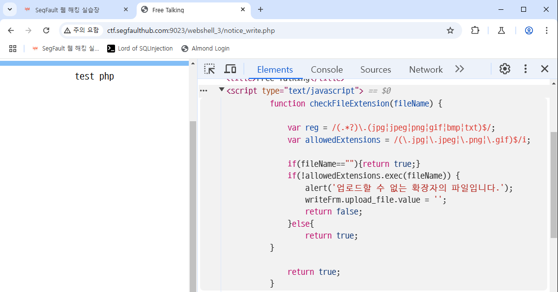 JS로 확장자 검사를 한다는 것을 파악했으니 우회를 할 수 있습니다.